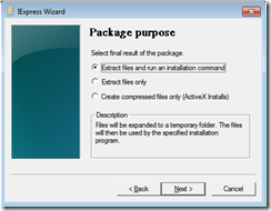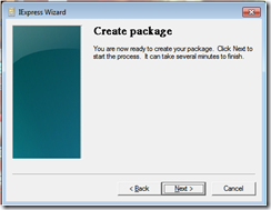 Start IExpress by typing IEexpress in a CMD prompt and select to create a new package.