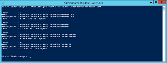 This script will mount the ISO image and read the content of the WIM file, this way we know what index we shall use.