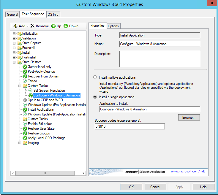Don’t get me wrong, I like to watch a god movie, it’s just that I don’t like to see the same movie twice. In Windows 8 there is a movie that is played for the first time logon and there is a Group Policy setting you can use to disable it. However, since I’m an OSD guy, I prefer to remove it long before that. So here you have a nice MDT Application you can download and install and put it into your task sequence for Windows 8 and you will never ever see it once more. Happy deployment!