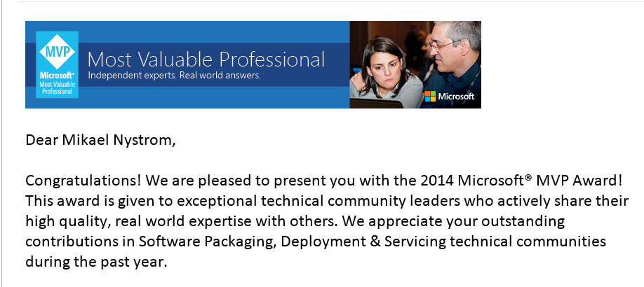 Friends, I’m happy to inform you that I have been awarded the Microsoft MVP title.