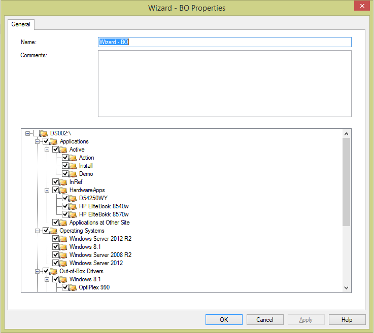 In the Deployment Workbench, Advanced Settings, Selection Profiles – Create a Selection Profile called “Wizard – BO”. It should contain everything that should be selectable at the BO site. In this case all folders are available.