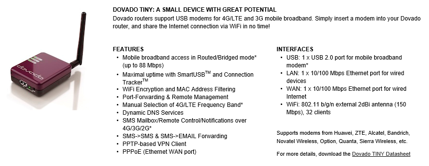 The TINY Router, configured for routing using cable or 3/4G and support for Wireless access to the Datacenter.