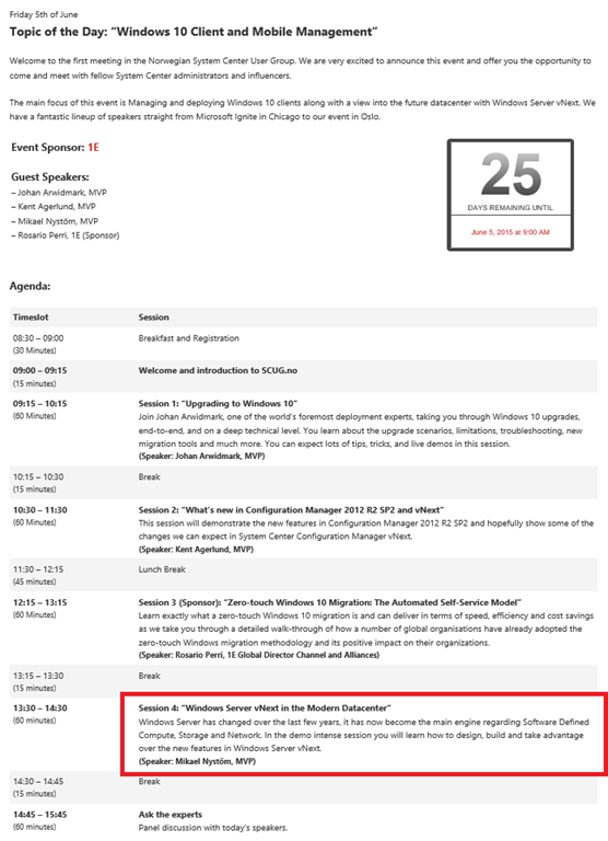 For more information http://www.scug.no/events/system-center-user-group-meeting-june-2015/