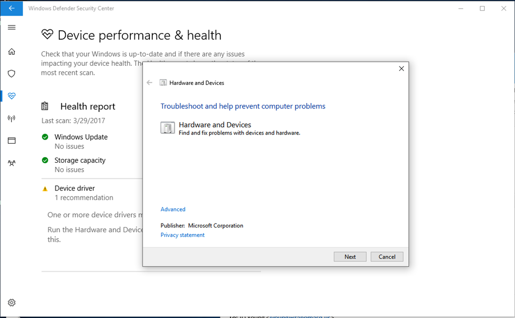 One of the new features in the upcoming version of Windows 10 (Windows 10 – Creators Update) is the Windows Defender Security Center, as you might expect it is defender, but it also includes a nice little health check