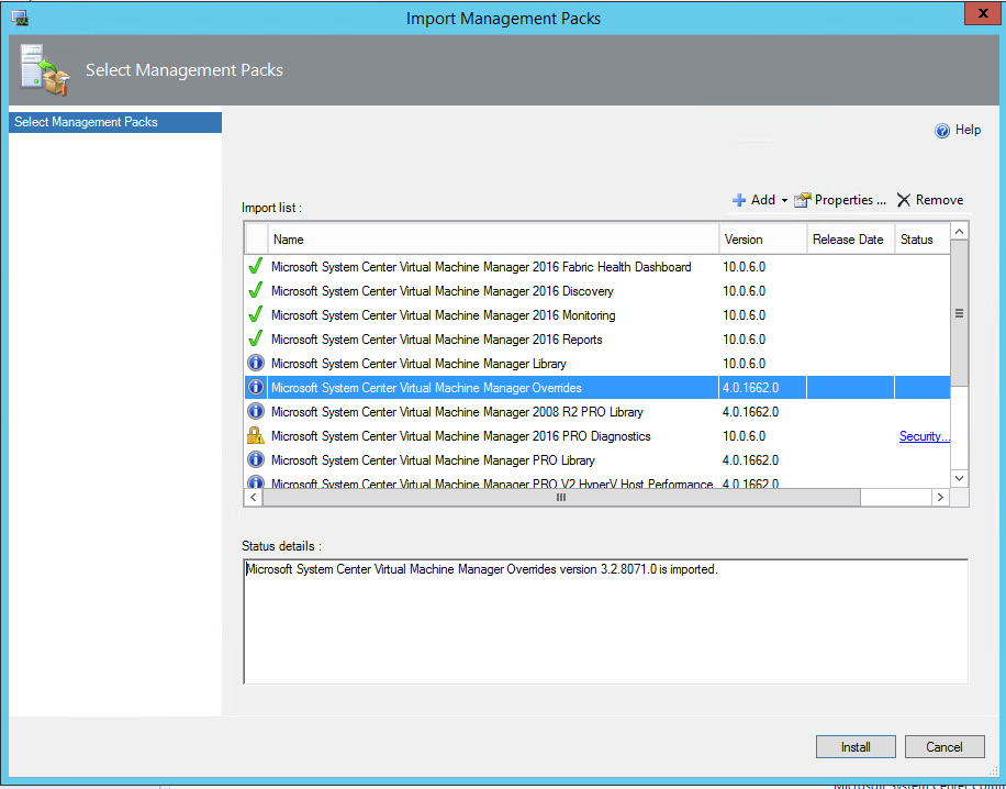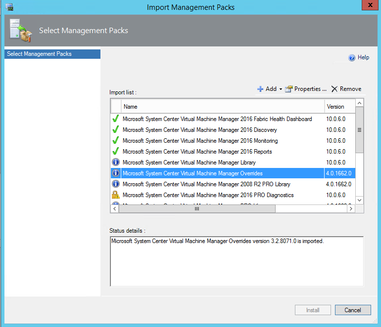 I was about to import management packs for System Center Virtual Machine Manager 2016, but the install button was grayed out? Ok, so let us do what we always has been doing, remove the already imported MP’s, but then it all gets red and error, hmm