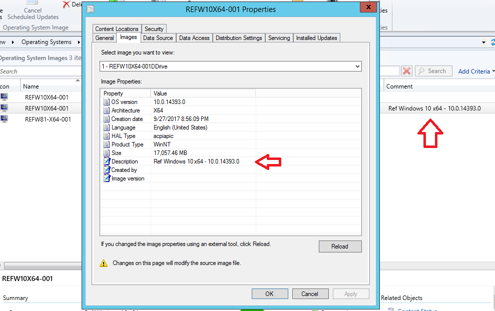 The default capture function in MDT does not add any description. It is not needed, but can be added by modifying ZTIBackup.wsf. In this case I added the Task Sequence Name, but you can add other things as will, like Task Sequence Description or Task Sequence version. I did this at a demo at Microsoft Ignite last week but I did not post it at that time, so here it is.